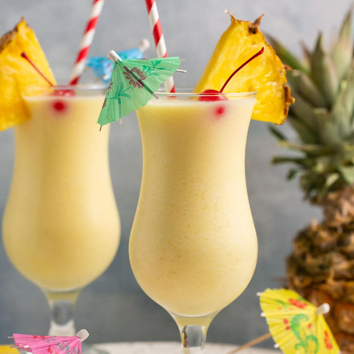 A blended matter of pineapple juice and cream of coconut.